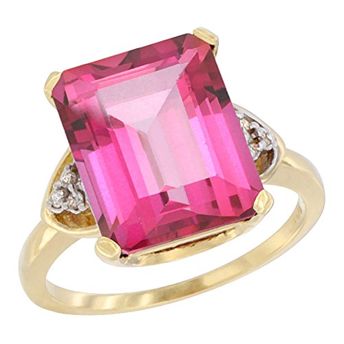 -. Title : 14K Yellow Gold Natural Pink Topaz Ring Octagon 12x10mm Diamond Accent, sizes 5-10