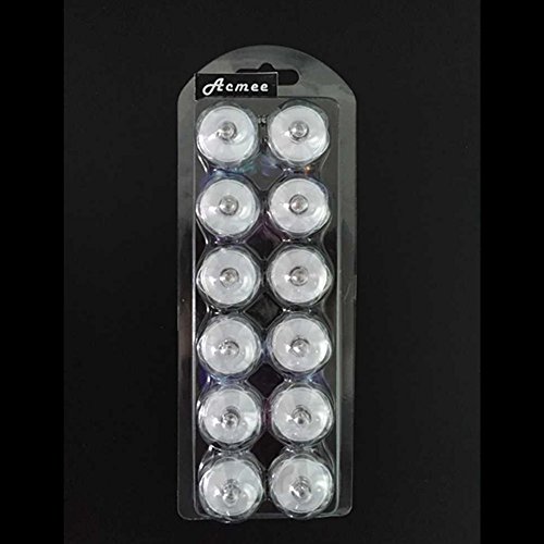 Acmee Acrylic Flower Shape Mini LED Submersible Vase Light Underwater Waterproof Tealight for Wedding Party Home (White, Pack of 12)
