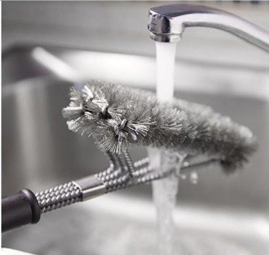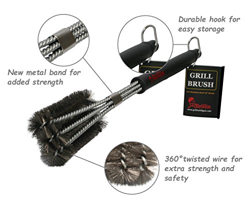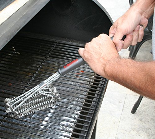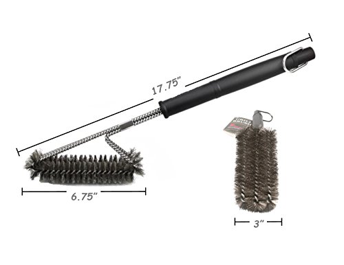 - 🔥 SUPER FAST LOW EFFORT GRILL CLEANING - Unique design is 3 brushes in 1! Each stroke is equivalent to 3 strokes of a conventional grill brush. 360° clean, not just the top surface. Quickly removes burnt on residue! A great gift idea. FOR BEST RESULTS: Repeatedly dip brush in water during brushing hot grill to steam clean.