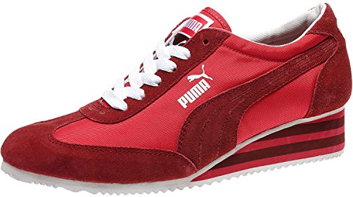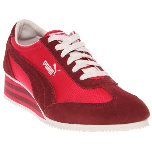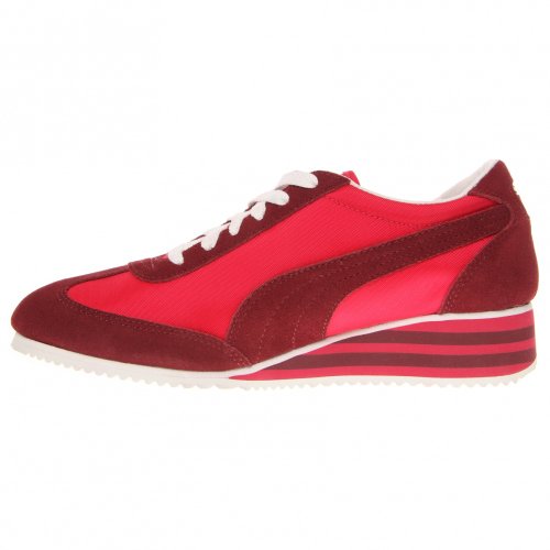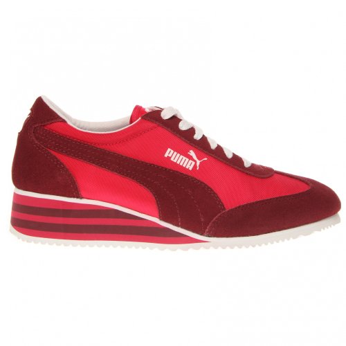 Your mama had style. We know. We've seen her snapshots from the '70s. She hit concerts, bowling alleys, even the running track in her PUMA Carolines. With their teethy-tread pattern and not-too-high wedge, it was a shoe born for sport but well-suited to hot pants and strutting around town. Proving that all vintage-y things are eventually back in style, we introduce the Caroline Stripe. It's reinvigorated with fresh midsole stripes; nylon and leather fancy it up while the wedge keeps it comfortable. We recommend wearing it with sass and cropped jeans or shorts or such - and making your mama proud. Nylon upper with leather overlaysFeature