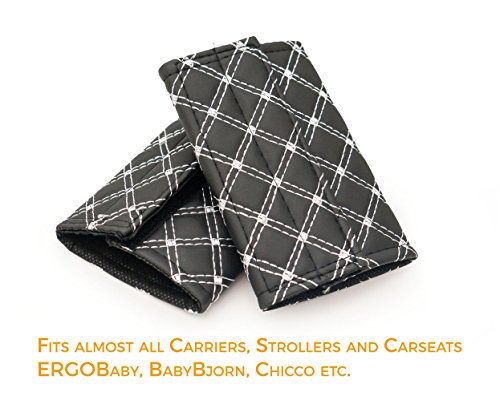-. Feature : NO MORE WASHING your Baby Carrier Straps, Stroller or Car Seat Belts from Drool and Food Stains! This stylish strap cover guard is waterproof so that your baby's drool is contained for easy clean up! Simply wash with a quick rinse at the tap and dries quick! / EASY FIT with VARY-WIDTH VELCRO: This has strong top-stitched velcro so that you don't need to fiddle with buttons, and fits all carriers like Ergobaby, BabyBjorn, Tula AND can be used for stroller & carseat straps or seatbelt at the correct chest safety level. / SOFT LUXURY LEATHER FEEL: This is made with Durable Microfiber Leather (Faux) so that it imitates soft smooth feel of human skin, and your baby will love it! / QUILTED HIGH-CONTRAST PATTERN: Grabs baby's attention as they are attracted to high contrast (eg. black and white) patterns / MAKES GREAT BABY SHOWER GIFT: Give your family or friend an upgraded premium look to their baby carrier!