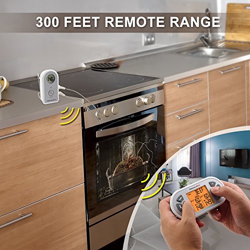 【Wireless Monitor & Dual Probe】Wireless meat thermometer with dual probe, range up to 300 feet away, allows you to monitor two kinds of meat or oven temperature at the same time