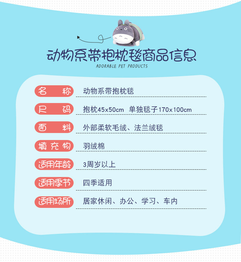 Size: pillow 45X30cm blanket 100x170cm