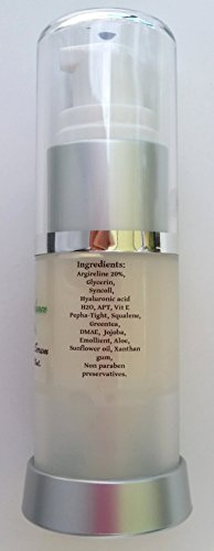 -. Feature : PARABEN FREE. Dramatic reduction in fine lines and wrinkles; shrinkage of pores; builds skin turf, increases thickness of the epidermal layer, and firms / delivers moisture on a sustained release basis; long-term moisturizing properties; skin tightening; prevents facial sagging; skin-firming effect; anti-aging / wrinkle reduction; collagen & elastin stimulation; smoother skin; prevents formation of new lines; builds new skin cells; and provides a glowing effect to skin / Argireline, Syncoll, Hyaluronic acid, Pepha®-Tight, Dmae, APT (Red marine Algae), Aloe Vera Extract, Jojoba / Green tea, Sunflower seed oil, Vit A,D, E, B12, Caprol, Glycerin