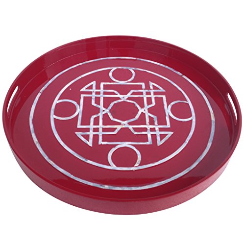 A&B Home KIH39189-RED Mother Of Pearl Inlay Lacquered Tray