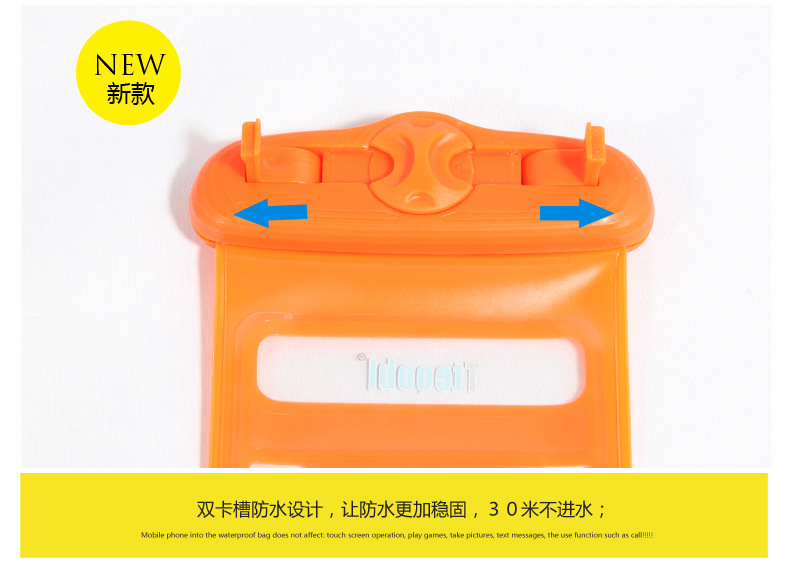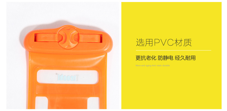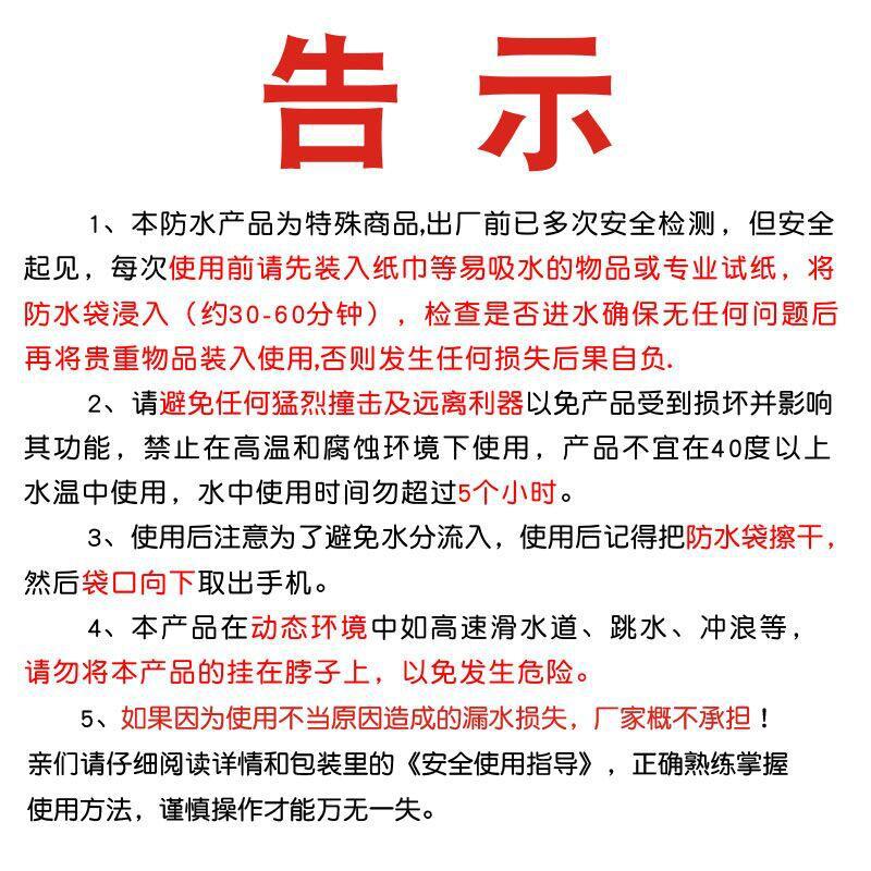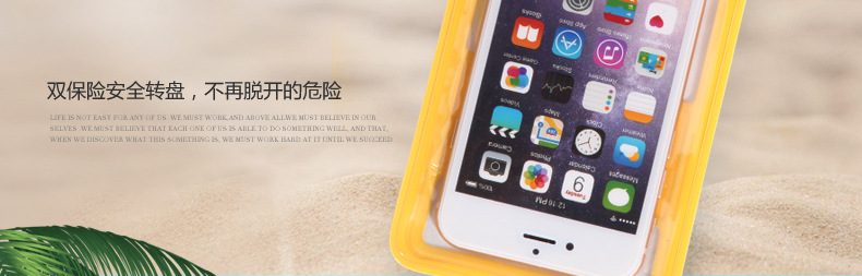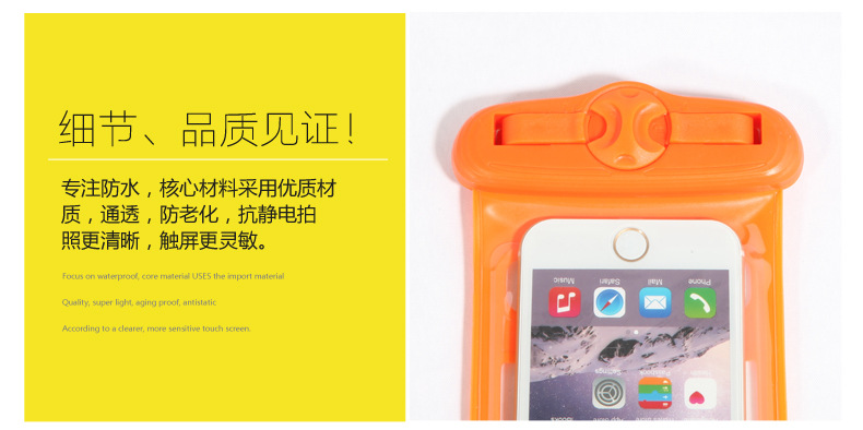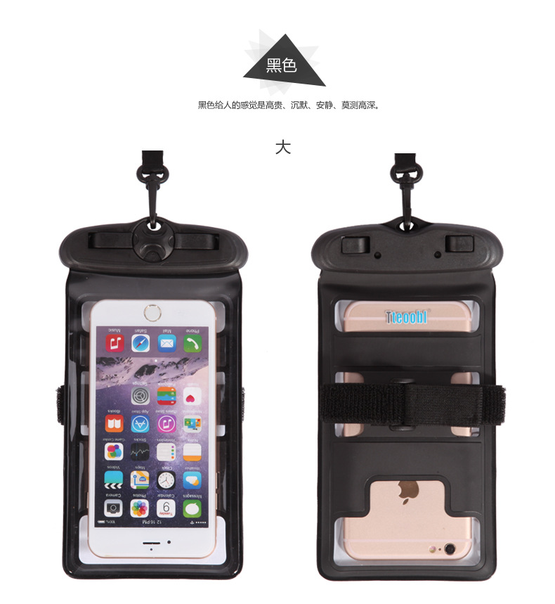 This is the current waterproof performance of the more safe style, the water touch screen sensitive, the operation is not affected, the front screen and the back of the phone lens window are highly transparent material, even if the phone across the waterproof bag can see, does not affect the viewing and taking pictures, In addition to good waterproof performance, its design is also very innovative, there are 12 colors optional, colorful (look like the details of the baby to see), can be used for snorkeling, rafting, water park, etc., baby links in sub-size, To meet the size of different phone models, according to the size of mobile phone size, trumpet can be used for mobile phones within 5.2 inches, large is used for more than 5.2 inches above 6.3 inches mobile phone.