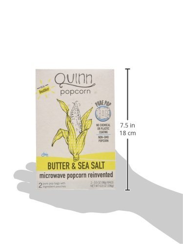 QUINN SNACKS MICROWAVE POPCORN - MADE WITH ORGANIC NON-GMO CORN - GREAT SNACK FOOD FOR MOVIE NIGHT {BUTTER & SEA SALT, 1 BOX, 6.9 OUNCE}