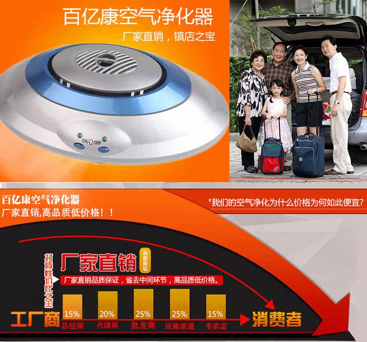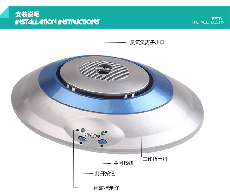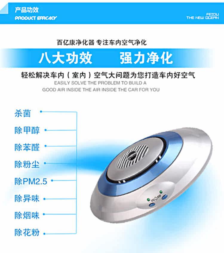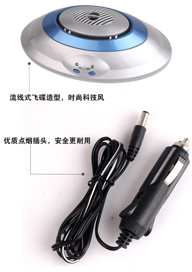 Product Description: This machine is designed for motorists, the use of high-frequency shock circuit, resulting in reactive oxygen and negative ions, kill bacteria, inhibit microbial growth, keep the car clean air as new.