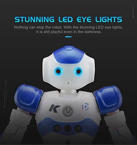 -. Feature : Function: walk, slide, dance, singing, programmable,one key demonstration,gesture sensing,cool light / The transmitter only needs 2 AA Batteries (not included in box) / The robot remote control mode and gesture sensing mode / With cool LED flashing lights / A good companion for your kids