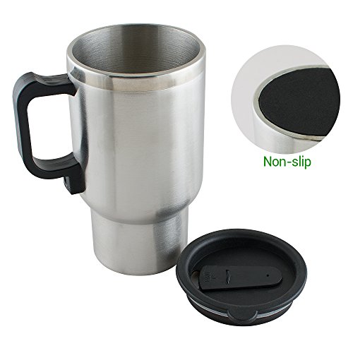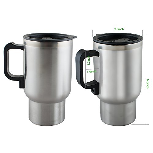 Pover Car 12V Heating Cup 450ml Stainless Steel Coffee Mug Cup Heated Thermos Car Insulation Cup for Travel