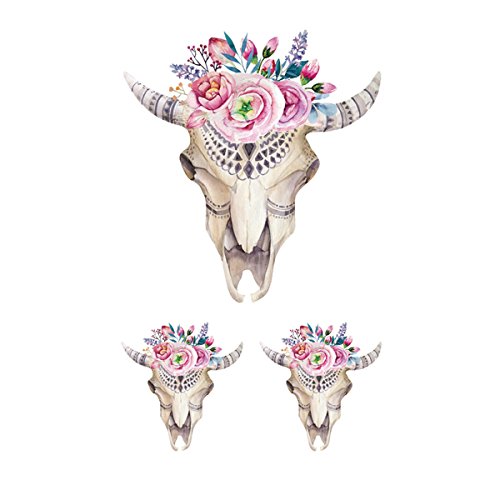 WYUEN 5 Sheets Fake Tattoo Waterproof Temporary Skull Tattoo Sticker For Women Men Body Art 9.8X6cm