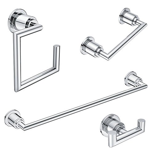 - Kit includes robe hook, pivoting toilet paper holder, 24-in towel bar, towel ring