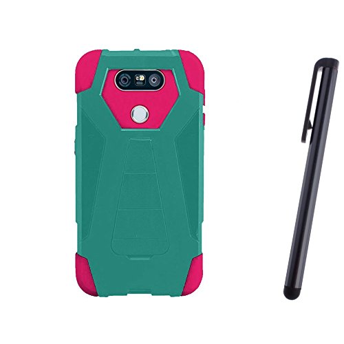-. Title : LG G6 H870 Case, Fincibo (TM) Hybrid Dual Layer Hard Silicone Skin Protector Cover With Stand, Teal/ Hot pink + Stylus Pen