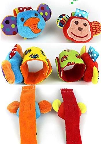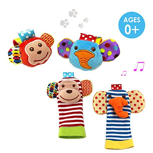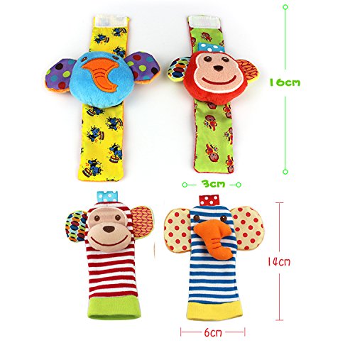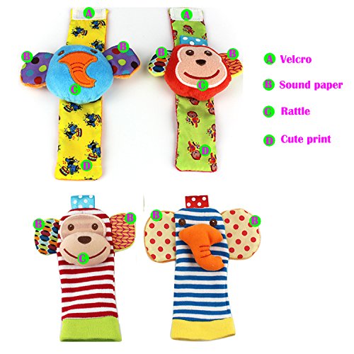 SKK Baby 4 Animal Wrist Rattle and Foot Finder Socks Set Development Toys Gift For Infant Boy Girl