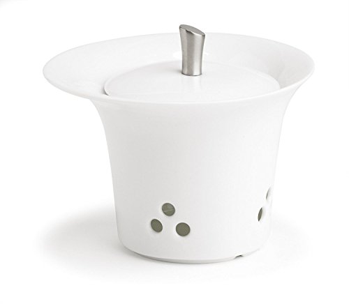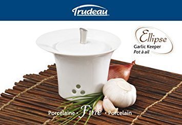 Ellipse White Porcelain & S/S Garlic Keeper by Trudeau - 4 Inch