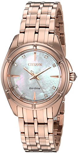 -. Binding : Watch -. Brand : Citizen -. Color : Rose Gold -. Department : womens -. EAN : 0013205122040 -. Feature : 28mm Case Diameter / Mother of pearl dial with diamond hour markers / Japanese-quartz Movement / Water resistant to 100m (330ft): in general, suitable for swimming and snorkeling, but not diving -. Label : Citizen Watch Company -. Manufacturer : Citizen Watch Company -. Model : EM0353-50D -. MPN : EM0353-50D -. PartNumber : EM0353-50D -. ProductGroup : Watch -. ProductTypeName : WATCH -. Publisher : Citizen Watch Company -. Studio : Citizen Watch Company -. Title : Citizen Women's 'Signature' Quartz Stainless Steel Dress Watch, Color:Rose Gold-Toned (Model: EM0353-50D) -. UPC : 013205122040