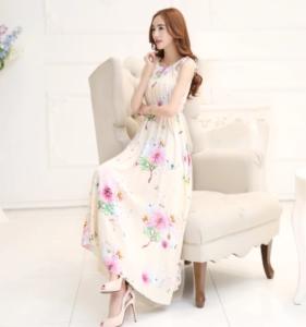 マキシ丈ワンピース ハイウエスト ロング丈ワンピース シフォン素材 プチプラ 大人女子 大人ガーリー 春夏 トレンド 柄