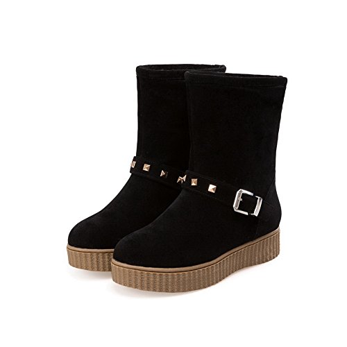 (BalaMasa)/Women's/Boots/DIRECT FROM USA/BalaMasa Womens Retro Slip-Resistant Rhinestones Buckle Suede Boots ABL10180