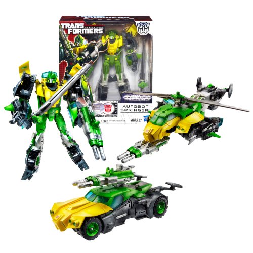 -. Binding : Toy -. Brand : Transformers -. EAN : 0760236420545 -. Feature : Includes: AUTOBOT SPRINGER with Sword and Double-Barrel Blaster (Alternative Mode: Helicopter or Armored Car) / Figure measured approximately 7 inch tall / Produced in year 2013 / For age 5 and up -. Label : Hasbro -. Manufacturer : Hasbro -. PackageQuantity : 1 -. ProductGroup : Toy -. ProductTypeName : TOYS_AND_GAMES -. Publisher : Hasbro -. Studio : Hasbro -. Title : Hasbro Year 2013 Transformers Generations "Thrilling 30" Series Triple Changer Voyager Class 7 Inch Tall Robot Action Figure - AUTOBOT SPRINGER with Sword and Double-Barrel Blaster (Alternative Mode: Helicopter or Armored Car) -. UPC : 760236420545