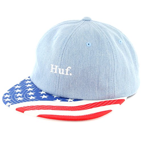 Product Description This is a brand new and authentic HUF "Denim 4th of July" strapback cap. This hat is all denim with an embroidered HUF logo on the front and a USA flag design on the visor. 0