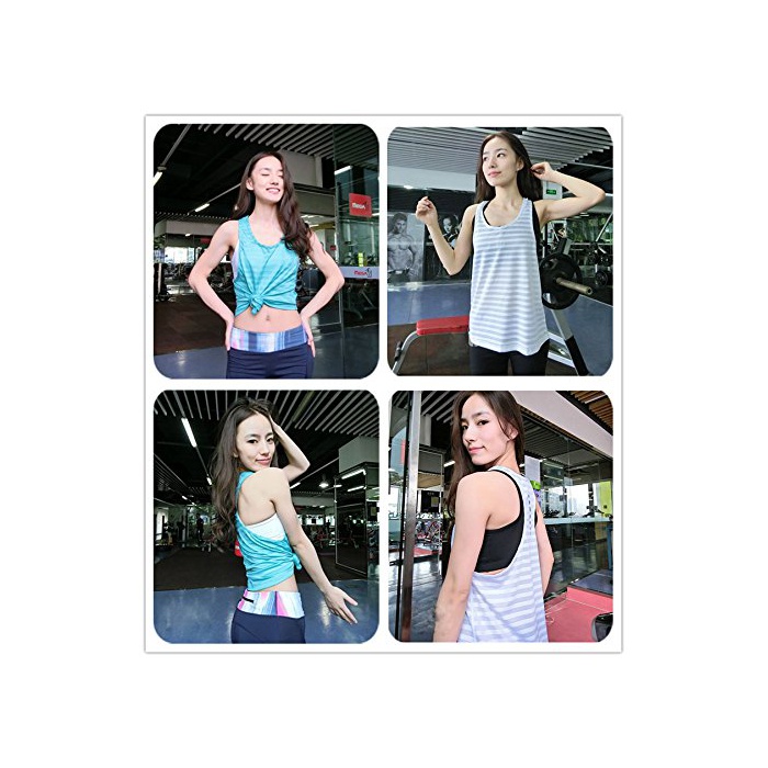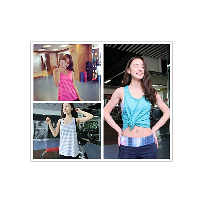 (《아자부로가루》)Azbro Girl 레이디스 스타일리시순색 보더 짐 요가 런닝 스포츠 U넥 노슬리브 캐디 컬러 레이서 백 베스트 톱스 3 색선택