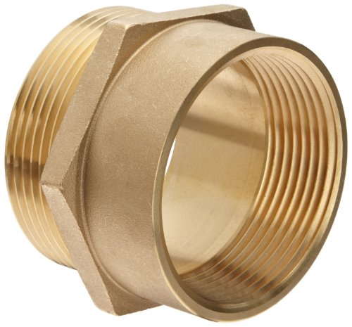 Moon 357-2562521 Brass Fire Hose Adapter, Nipple, 2-1/2" NPT Female x 2-1/2" NH Male