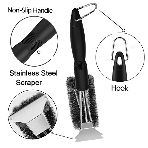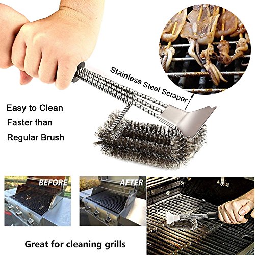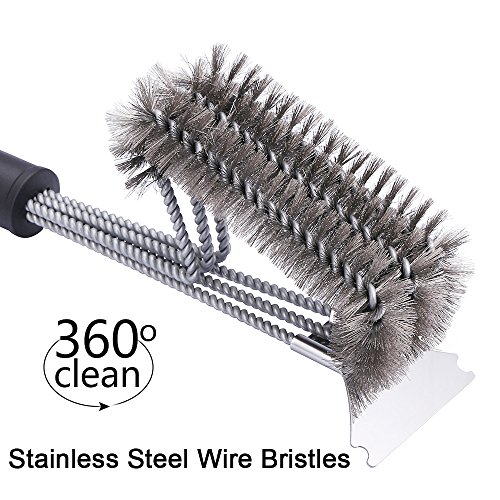 Bestmay Grill Brushes 17.09"(43.5cm)360 Degree Clean 3 in 1 Stainless Steel Wire Bristles with Scrapers Durable Handle Effortless BBQ Cleaner for Electrnic Grills ,Charcoal Oven Grills