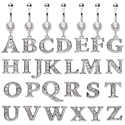 (Cocobul Body Jewelry)/Accessories/Belts Buckles/DIRECT FROM USA/316L Navel Ring with Clear Gemmed Alphabet Letter Dangle