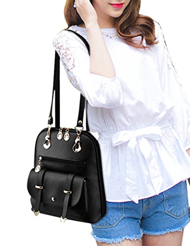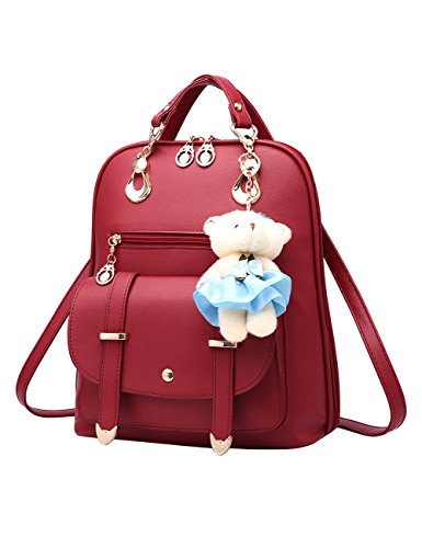 -. Title : Bingirl Women Casual Backpack PU Leather Concise Preppy Style Shoulder Bag with Bear Pendant