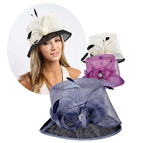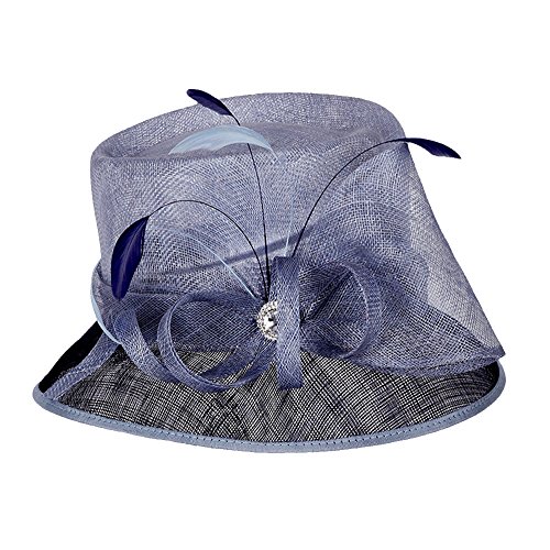 Product Description? Color : Light Blue, Navy ? Theme : Feather ? Crown Circumference : 23" ? Crown Height : 4" ? Brim Width : 3" ? Material : 100% Sinamay ? Stone Feather Small Two Tone Loopy Sinamay Hat0