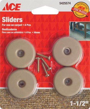 -. Feature : "ACE" SLIDE GLIDE ROUND PADS / 1-1/2" / Allows furniture to move smoothly over carpeted floors. / screw on adhesive back. / Card of 4