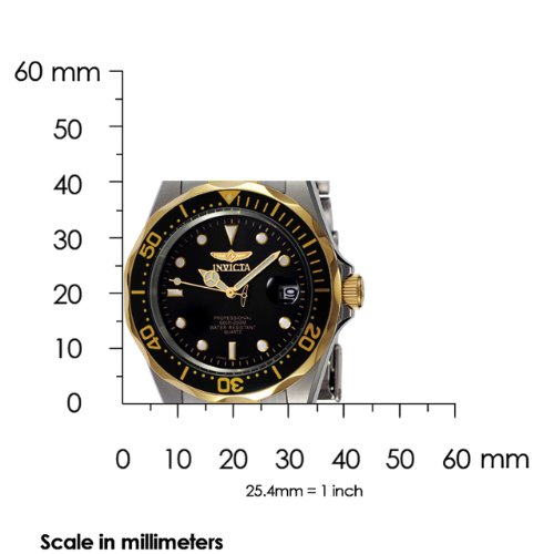 - Feature : With a masculine, sophisticated design and durable technology, the Invicta Pro-Diver is the ideal timepiece for a black tie affair--or a day in the water. / Japanese Quartz movement with analog display / Protective anti-reflective mineral crystal dial window / Features second hand, luminosity, push-down crown, magnified date window, uni-directional rotating bezel, two-tone stainless steel / Water-resistant to 200 m (660 feet)