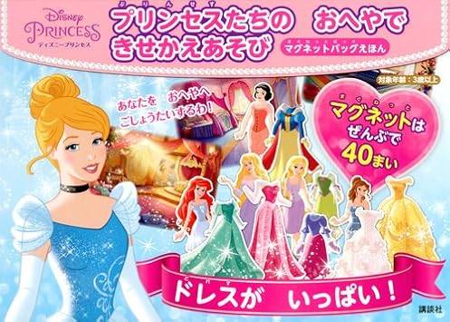 マグネットは、プリンセスの人形が6枚、ドレスが27枚、小物が7枚、全部で40枚です。