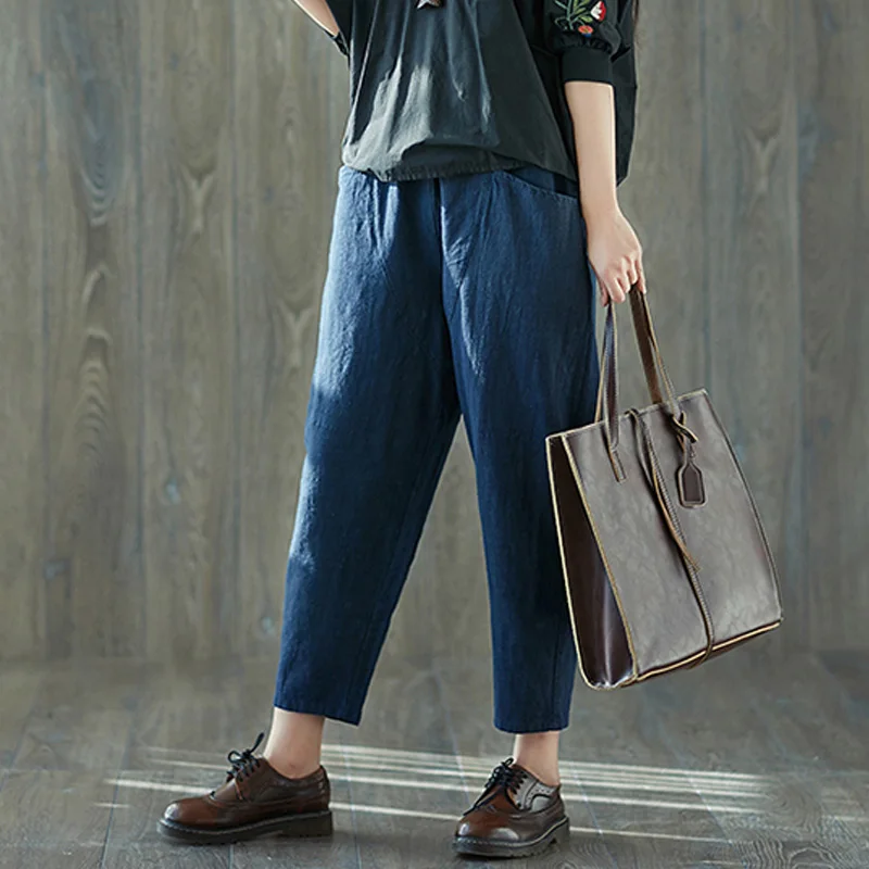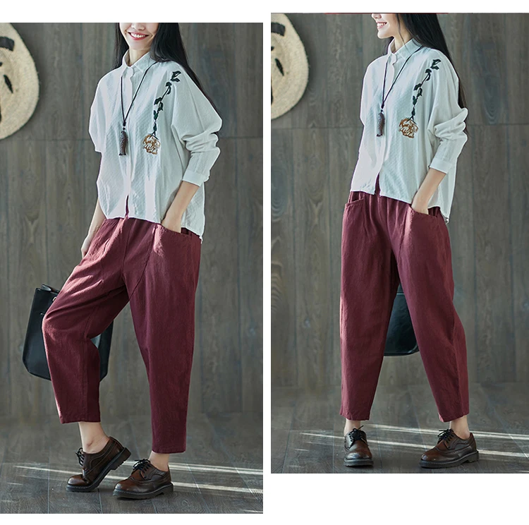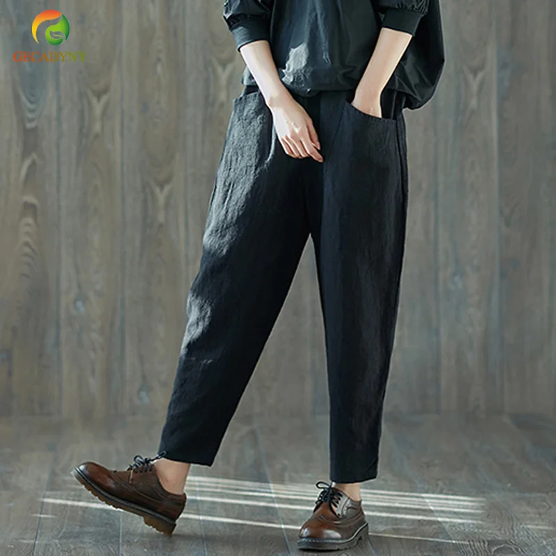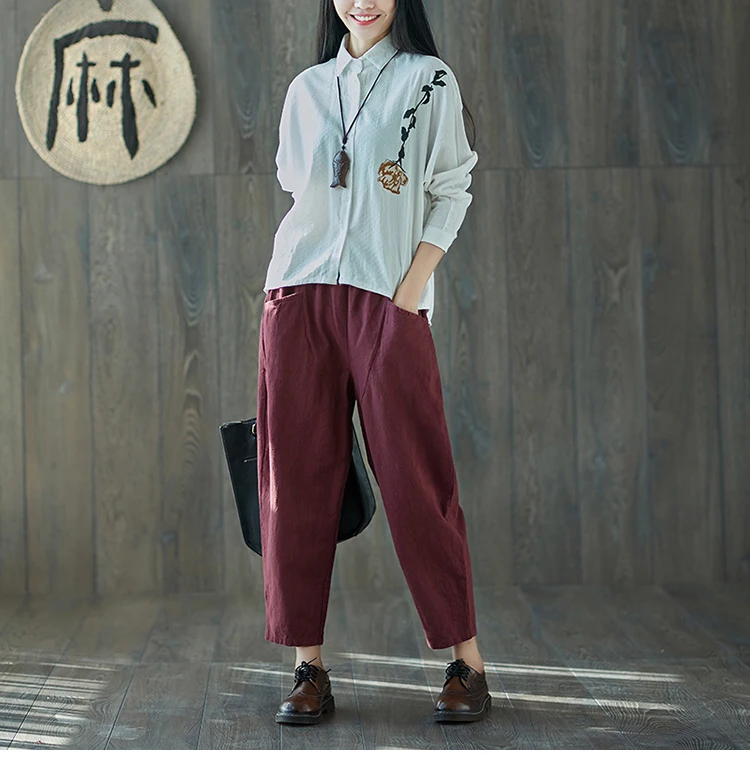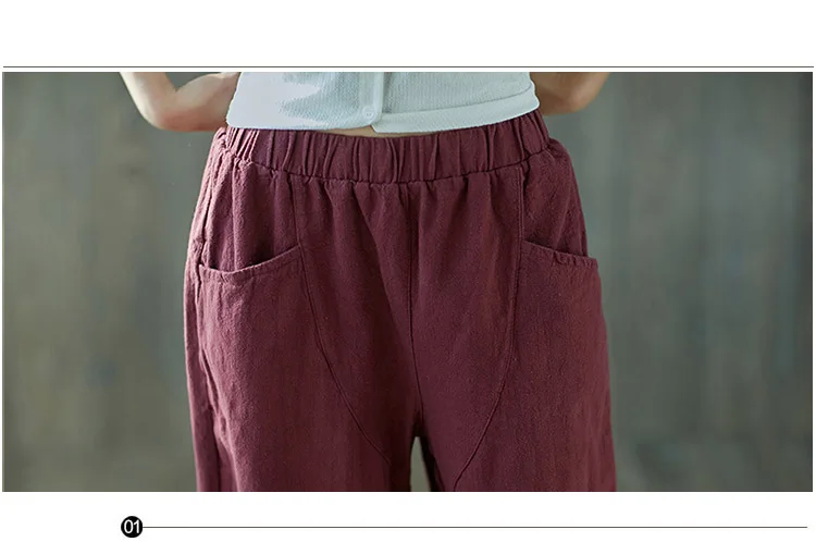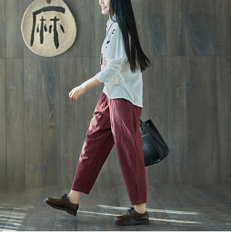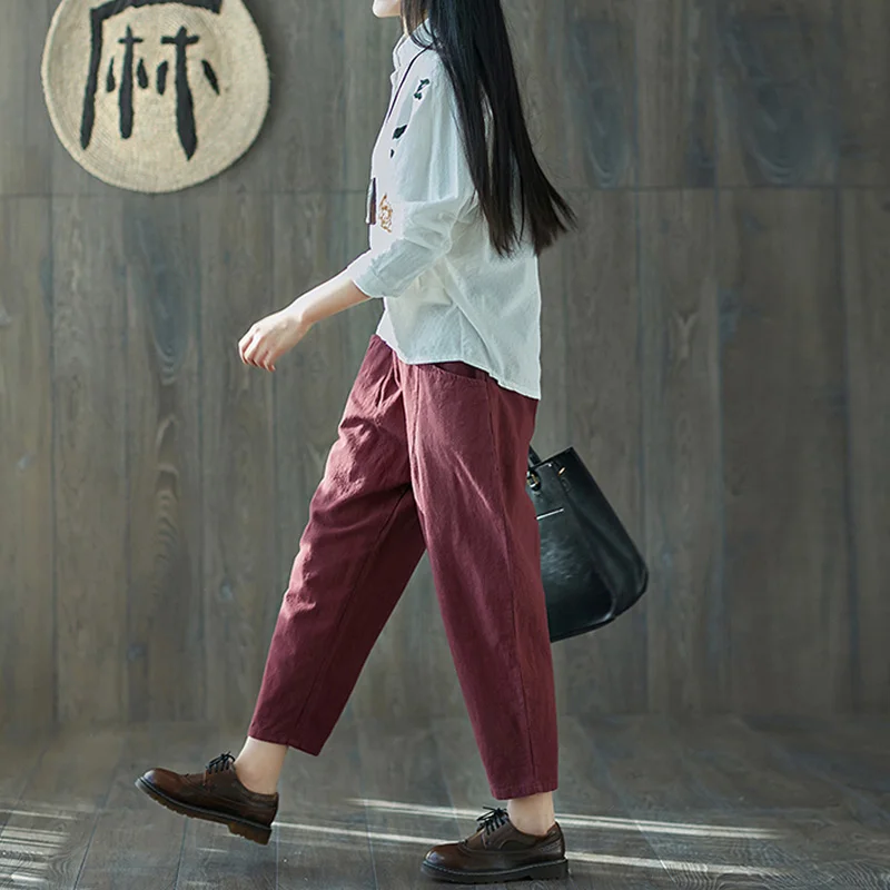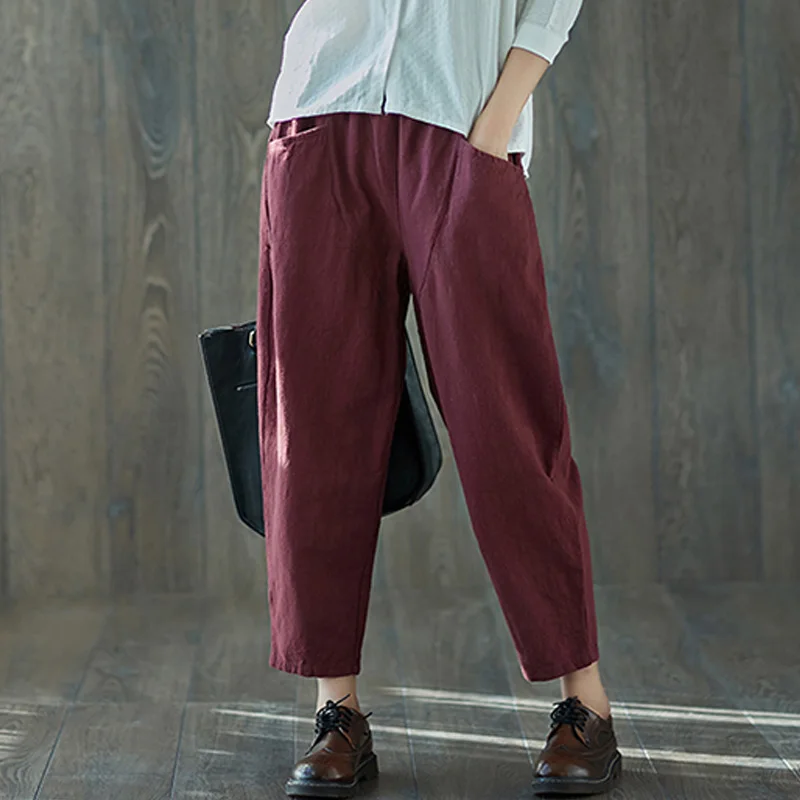 Style:Loose,Solid,Harem Pants,Cotton Linen,Large Size,Vintage
