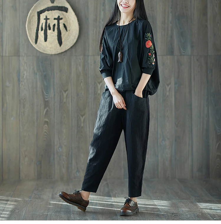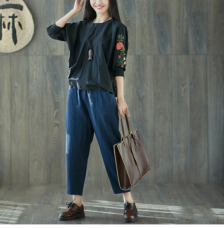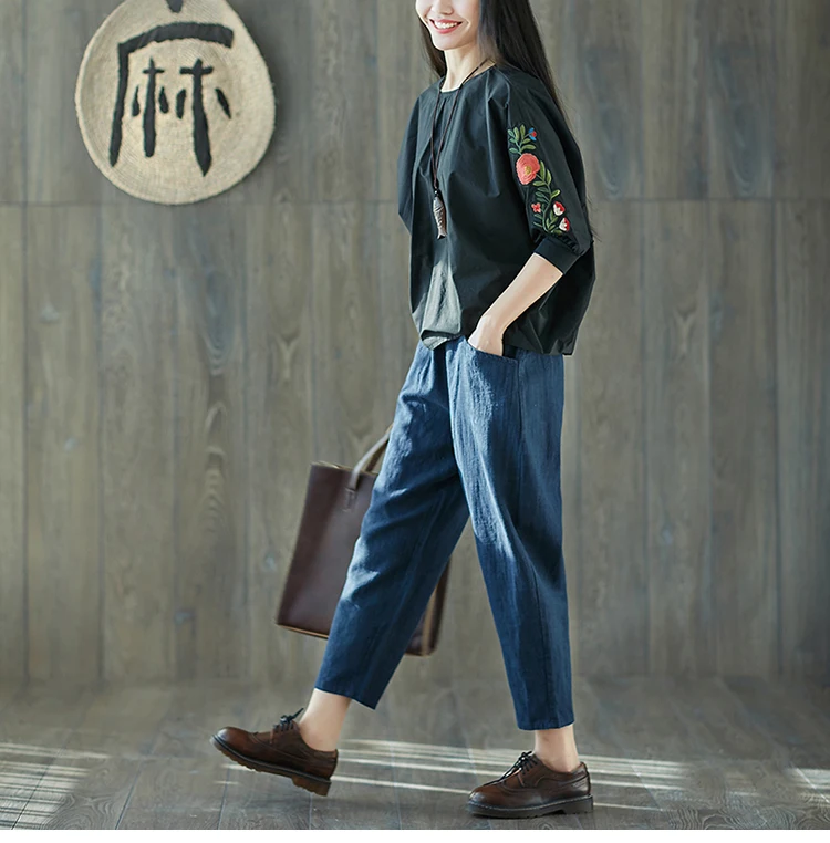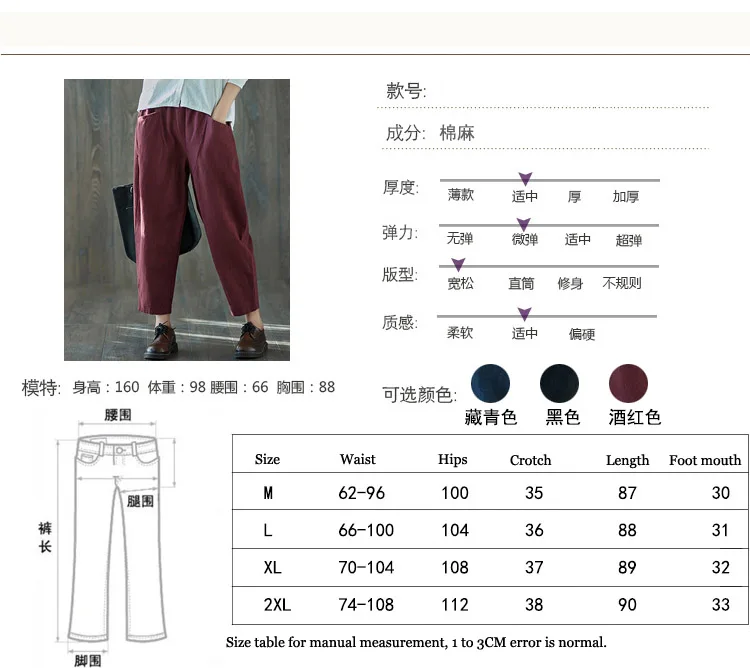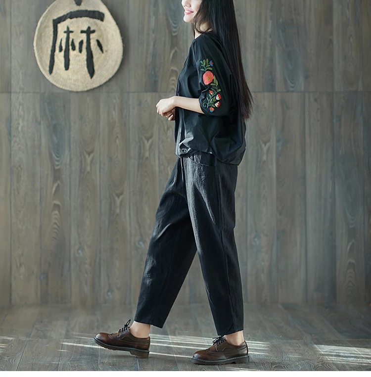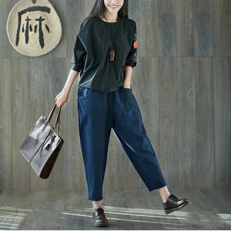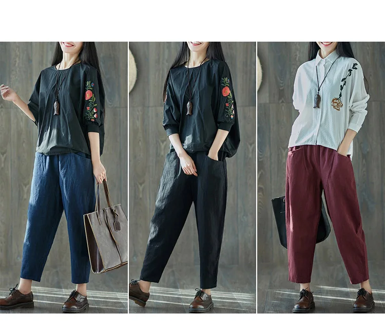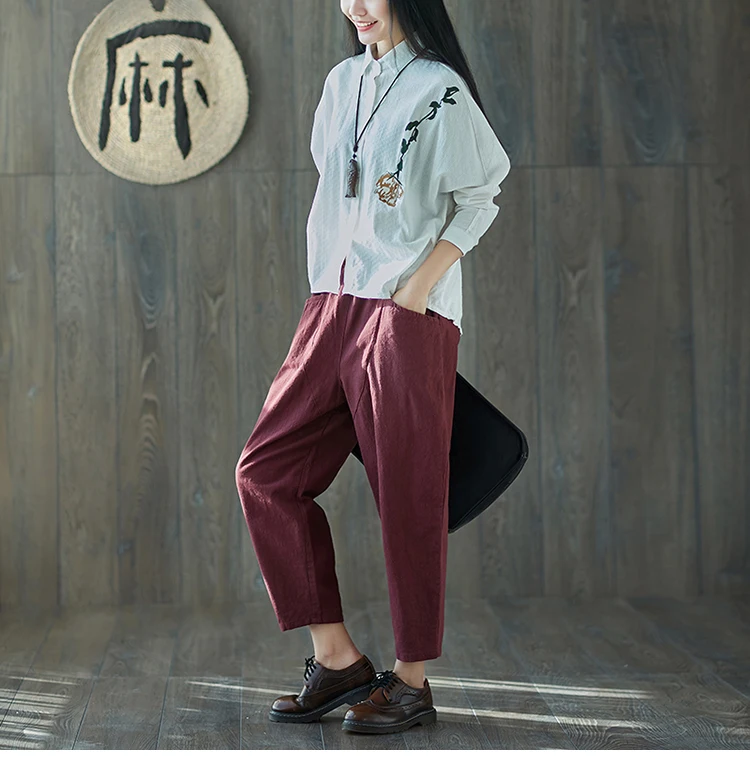 Style:Loose,Solid,Harem Pants,Cotton Linen,Large Size,Vintage