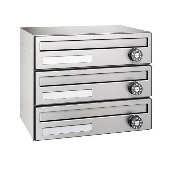 | 仕様 | 完成品 錠:静音ダイヤル錠※開錠番号指定不可 単体質量:5.2kg(3戸用) 投入口サイズ:25×328mm 接続方式:直径4mmナイロンプッシュリベット |