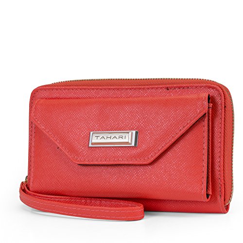 WOMENS RFID WALLET BLOCKING TECHNOLOGY - This TAHARI RFID blocking wallet clutch stops theft and electronic pick pocketing, protect your credit cards, debit cards, drivers license, bank cards or any other RFID enabled cards