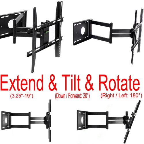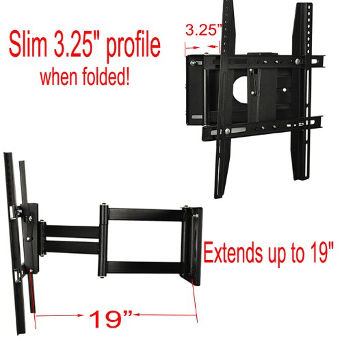- Feature : Universally fits 99+% of TVs for 14" 15" 19" 21" 22" 23" 26" 27" 30" 32" 37" 40" LED, LCD, Plasma TVs and flat panel displays such as Dynex/Dell/Olevia syntax/ polaroid/Sony/ Samsung/ LG/ Haier/ Panasonic/ Vizio/ Sharp AQUOS/Insignia /Westinghouse/Pioneer/ProScan/RCA/Toshiba/Magnavox/Sanyo/Philips/Emerson/Coby/JVC/AOC and more. / Durable Black finish,Super-Strength 55 lbs load capacity. Made with the most solid High-grade steel construction, slim and heavy duty for durable & reliable television mounting. Please install this TV mount / bracket on Firm / Solid / Strong wall. Not Suitable for studs wall. / Dual Tilt & Rotation adjustment, viewing angle can be set up to +/- 20 degrees (panel tilted down / forward),180 degrees Swivel(panel rotates Right / Left ). Slim 3.25" profile when folded! Extends up to 19"!Compliant to VESA standard 75/100/200/400. Professinal Tilting/ tiltable & Articulating & Extended flat panel TV mount / bracket. / Built-in Magnetic bubble level for better level ajustment.Easy installation, installation manual and fitting screws and bolts included. A 6 Feet High Speed HDMI Cable is included!!! / Suitable for most palces such as ambience, sitting rooms, conference rooms, merchandising displays, hotels or anywhere else. Also can hold your TV in the corner of the room. Articulating TV Mount Allows varying extendable, side to side, and tilt movement for multiple viewing options and positions.