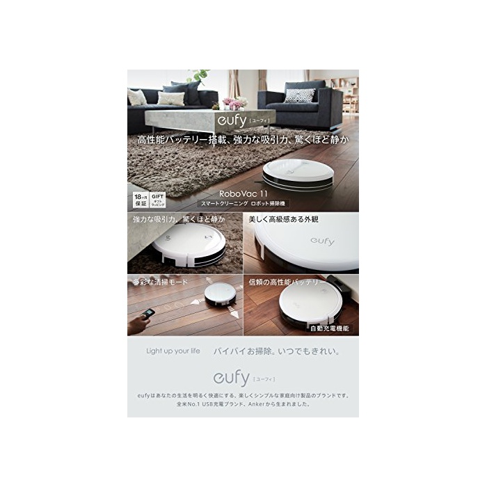 원본상품명: eufy RoboVac 11 (ロボット掃除機)【音&力吸引 / 4つの掃モド / 自動充電 / リモコン & 充電ステション付】(ホワイト)