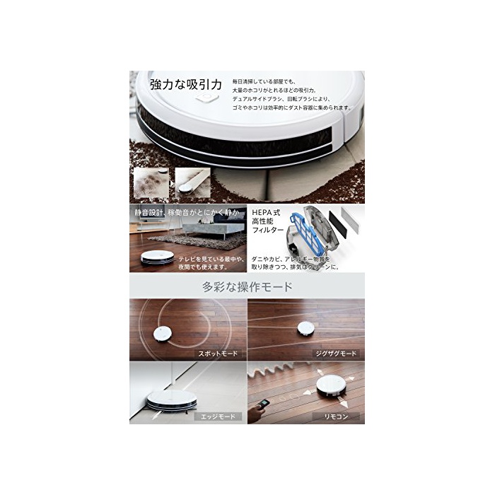 【※주의: Anker제품은 AnkerDirect만이 정규 판매점 그래서 주의하여 주십시오】자동 청소:버튼 조작 하나에 간단 청소.다채로운 클리닝 모드에 방의 구석구석을 예쁘게에 옵니다.장애물을 회피 하기 위한 적외선 센서,그리고 낙하를 피하기 위한 낙하 방지 기술이나 자동 충전 기능 등 많은 기능을 탑재했습니다.또한 전용 리모콘이 동봉 하고 있으므로,모드의 변환이나,전원 온 오프도 모두 리모트 조작으로 행하는 것 를 할 수 있습니다.