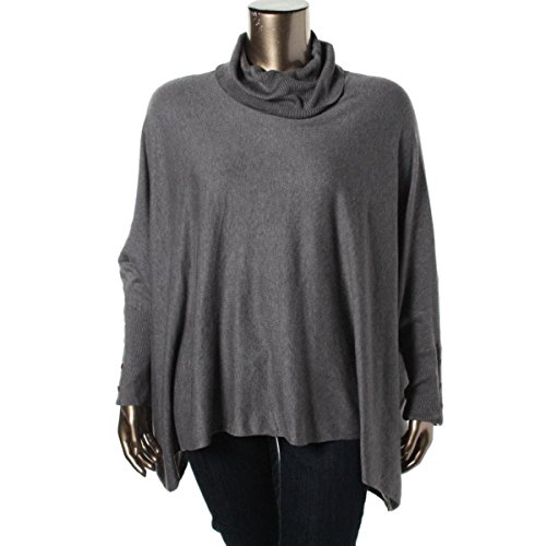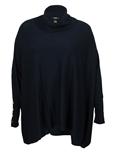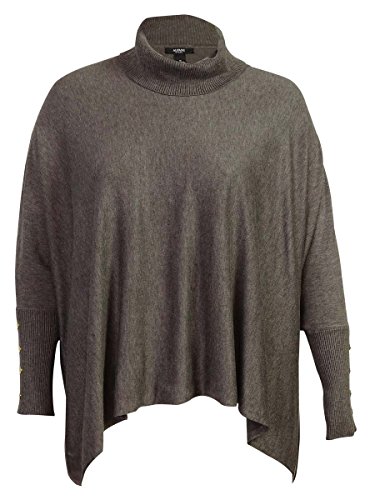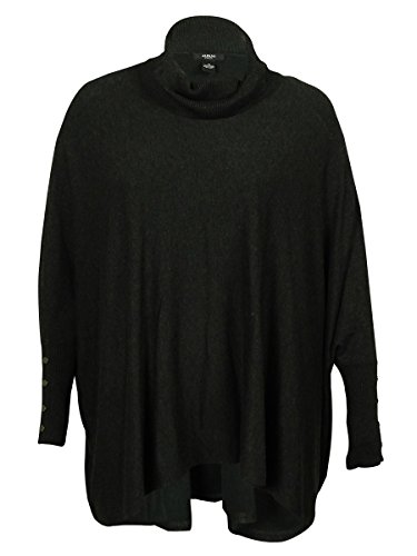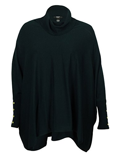 Pullover sweater features turtleneck, long sleeves with faux buttons, and ribbed cuffs.
