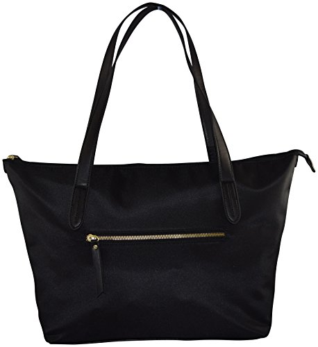 - Feature : Lightweight nylon fabric with manmade leather touches / Padded computer section fits a laptop up to 14.5" / Shoulder straps for easy hands free carrying. These double handles have an 14 inch drop length. / Multiple organizational pockets for files, books, and digital accessories. Main compartment has zipper closure. The interior beside the laptop pocket also has 3 divisions, one of them with zipper closure. It also has 1x cell-phone pocket and one zipper pocket. / Exterior large easy-access pockets with organizer. Color accented nylon interior lining.
