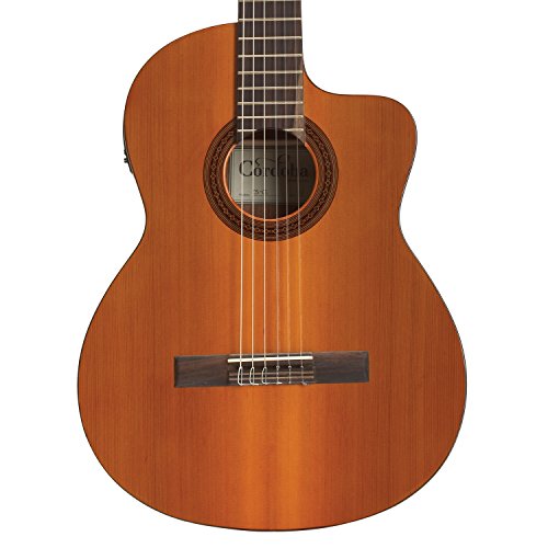 - Feature : Solid Canadian Cedar Top, Mahogany Back, Sides & Neck / Indian Rosewood Binding/Indian Rosewood Bridge / Rosewood Fingerboard, Cutaway-Electric Style Neck, 19 Frets, 25.6" Scale Length / All Natural Inlaid Wood Mosaic Rosette, Spanish Fan Bracing, High Gloss Finish / Includes: Cordoba Wood Foot Stool, ChromaCast Acoustic Guitar Gig Bag, Guitar Stand, 12 Pick Sampler, String Winder and Polish Cloth