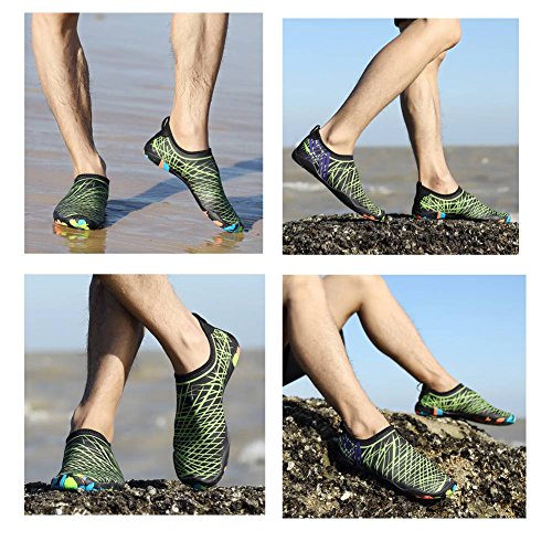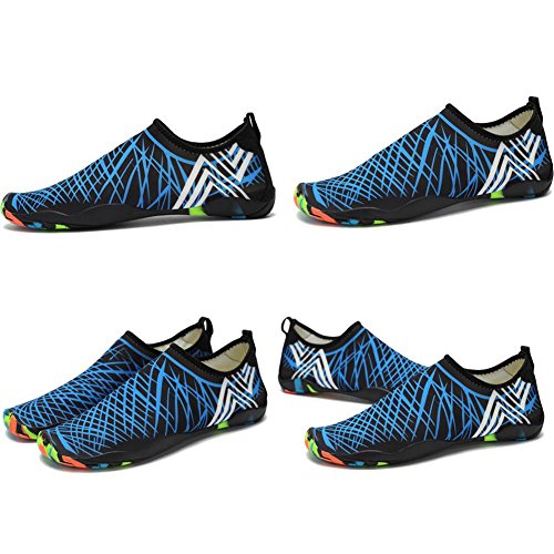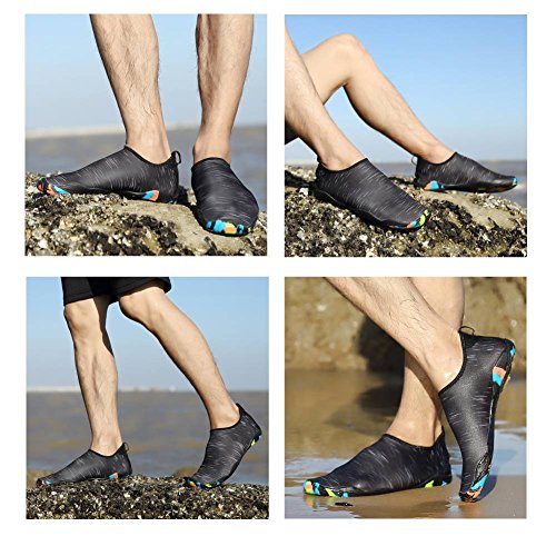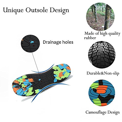 -. Feature : LIGHTWEIGHT & COMFORTABLE: Take advantage of the flexible and lightweight style, the water shoes allows all toes to move and wear no sense of restraint, and making you feel great freedom and comfortable to take it to everywhere. / QUICK-DRY DRAINAGE HOLES: Removable insoles and 8 holes on each bottom to ensure proper water flow out of the pool shoes, sand does not stay in them, and create a cooler and healthier shoe environment. / UPGRADE OUTSOLE: the aqua socks come with anti-slip rubber outsole, and it provide exceptional traction in slippery conditions. It is flexible and sturdy enough to protect your feet from stepping on rock and stone. / FASHION STYLE:The skin shoes are fashionable in appearance, display in different colors, stylish and generous, and the style is very special. / MULTIFUNCTIONAL: The men women barefoot shoes can also be used as water sandals, water slippers and flip flops, they are ideal for beach, pool, kayaking, river, water aerobics, water park, lake, snorkeling, fishing, boating, surfing, ocean, sidewalks, cruise, car washing, pilates, weight training, wake-boarding, sailing, parasailing, windsurfing, garden, lawn and yoga
