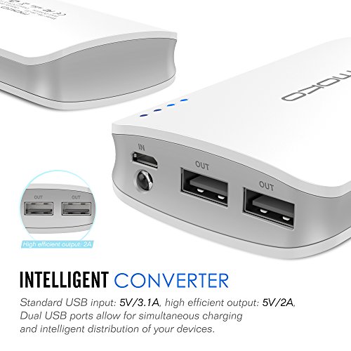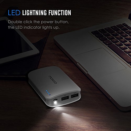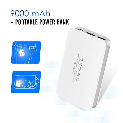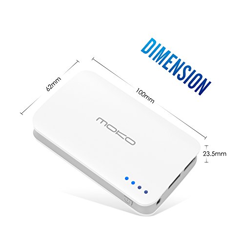 -. Binding : Electronics -. Brand : MoKo -. ClothingSize : 9000mAh (White) -. Color : 9000mAh (White) -. EAN : 0765857008240 -. Feature : Samsung / LG Grade A 18650 lithium-ion battery cells inside guarantees the safety and reliability of using this MoKo product. / Fit-Charge technology adopted for maximized compatibility with iPhone, iPad, Andriod smart phones and 5V input tablets in the market, and improves the charging speed. / Dual USB output humanistic design (Max 3.1A) for cellphones and tablets, allows you to charge 2 devices at the same time. / 9000mAh capacity charges an iPhone 6 4-5 times, a Galaxy S5 3-4 times or an iPad Mini 2-3 times. 4 status LEDs keep you informed of remaining juice.Over 500 battery recharge cycles and 6 intelligent protection from overcharge, overdischarge, overcurrent, overpower, overheat, short circuit. / Round-corner, anti-skidding and frosting design makes it comfortable to hold or put anywhere you want.Built-in flashlight for dark or low-light environments. -. Label : MoKo -. Manufacturer : MoKo -. ManufacturerPartsWarrantyDescription : Parts -. PackageQuantity : 1 -. ProductGroup : PC Accessory -. ProductTypeName : CARRYING_CASE_OR_BAG -. Publisher : MoKo -. Size : 9000mAh (White) -. Studio : MoKo -. Title : MoKo 9000mAh Portable Power Bank Battery Charger 2.4A Output, Built-in Flash Light, Simultaneously Charge-discharge for iPhone 6s/6s Plus / iPad Mini 4 / iPad Pro / Android Device and More, WHITE -. UPC : 765857008240