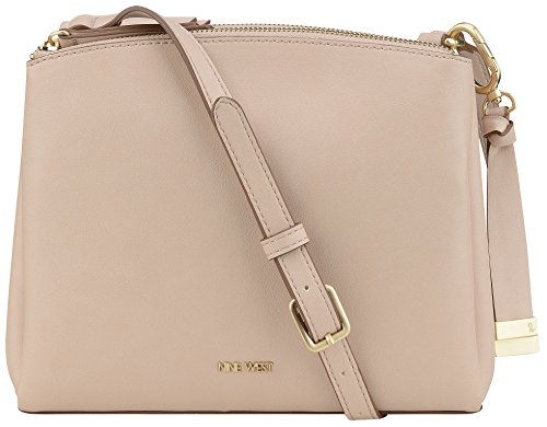 Triple compartment crossbody. Front and back compartment are top zip and middle magnetic compartment. Adjustable crossbody strap with hanging adornment.