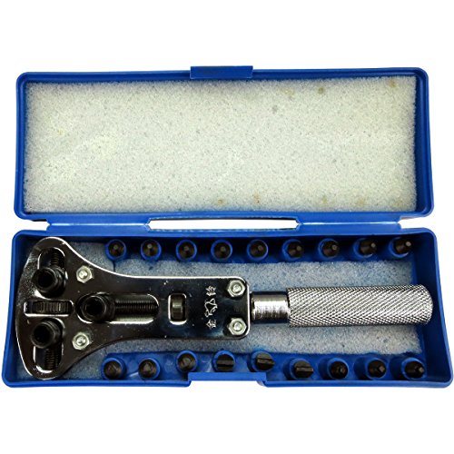 Studio : Hobby Tool Supply Publisher : Hobby Tool Supply Binding : Watch Product Description This Jaxa design watch case wrench from Hobby Tool Supply features 15 screw in pins (far superior to snap in pins): 9 round point pins, 3 square point pins, 3 triangle point pins, and 3 half circle pins. These are used dependent on the design of the case on the back of your timepiece. Tool includes a blue plastic snap case with pin storage. 0