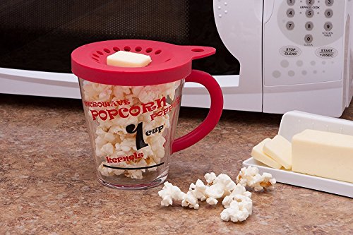 Personal Popcorn Popper- 1 Cup Microwave Popcorn Maker with Silicone Easy-Grip Handle & Lid- Perfect for a quick healthy snack!