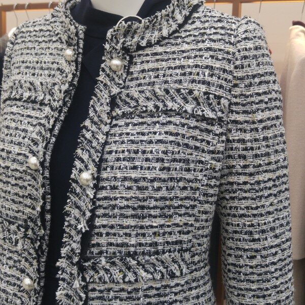 진주단추 장식으로 포인트를 준 고급스러운 느낌의 롱트위드자켓입니다.