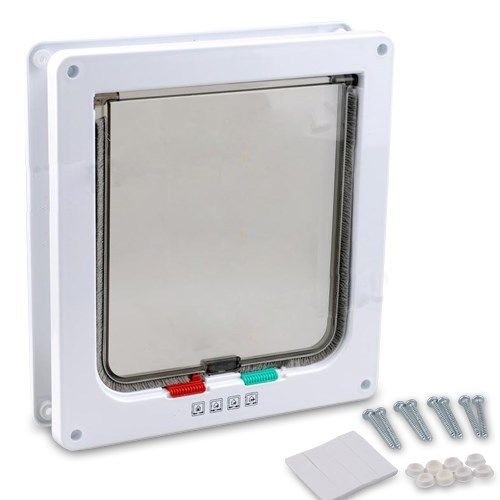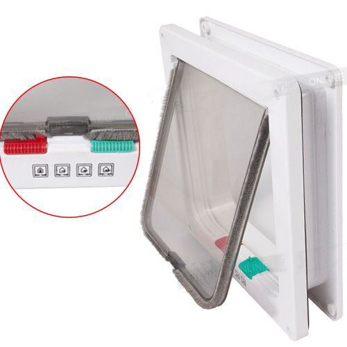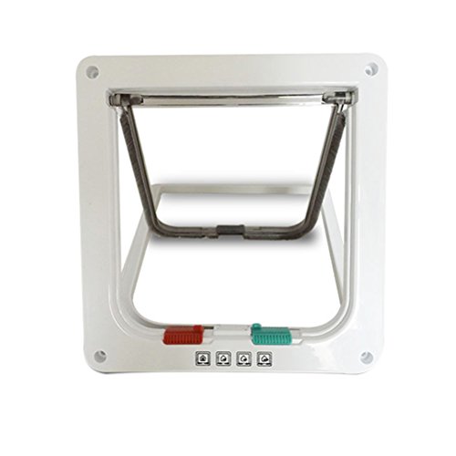 Studio : UEETEK Publisher : UEETEK Binding : Misc. Product Description Description The locking function gives you the option to set it so your pet can only go out or come in. Or you can unlock both sides. You can also lock it in both directions to keep your pet in for the night. While some cat doors only cover the opening, the Locking Pet Door is telescopic. This means the frame will also cover the interior of the door so your pet won't damage the wood or step into a hollow door by accident. Features - Color: White. - Material: ABS. - Size: 19.8 * 19 * 1.8cm(L * W * H). - This locking pet door, gives your cat or small dog the freedom to come and go without bothering you. - Locking doors can be set in 4 modes: swing out only, in only, both in and out, and fully locked. - Transparent flap lets you and your pet see what's on the other side of the door. - Easy to install; waterproof and tightly sealed to prevent energy loss, brush strip eliminates noise from the door closing. -------------------------------------------------------- Package Including 1 * 4-Way Magnetic Lockable Cat Kitten Dog Pet Entry andamp; Exit Safe Flap Door - Size S (White) 0